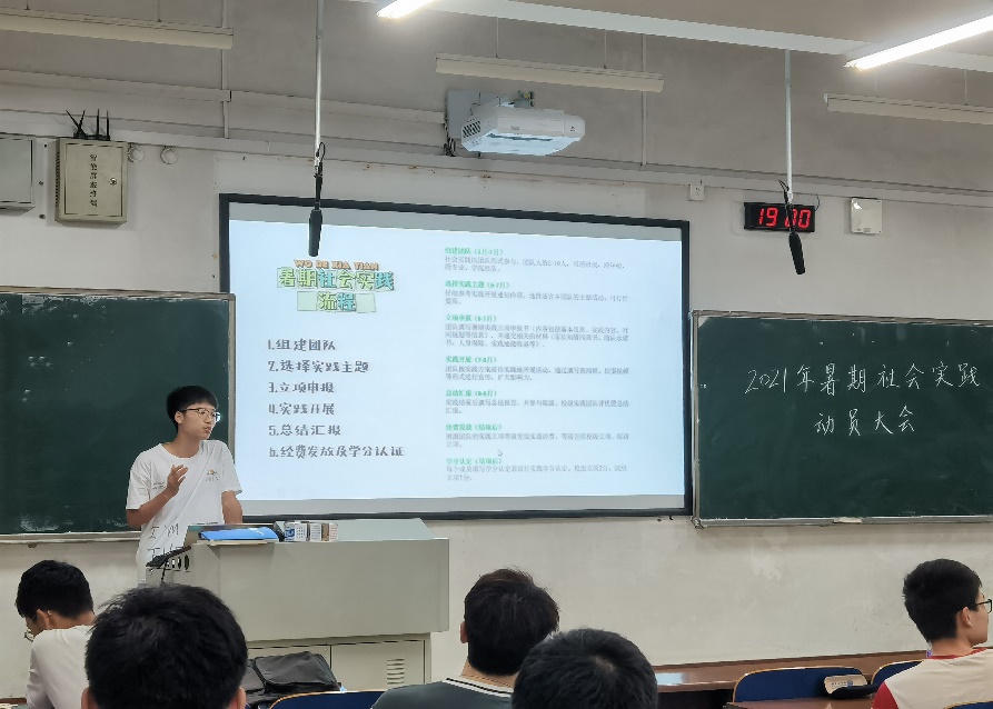 为了推进2021年暑期社会实践活动的有序开展,让更多同学了解、参与到社会实践中来,球王会团委于6月18日晚上7点,在新校区A座108开展了暑期社会实践宣讲会,为有意向参与暑期社会实践的同学们进行现场讲解。