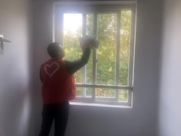 下午两点,志愿者们身穿红马甲,来到升华员工公寓28栋。青志协分配好清扫任务后,志愿者们利用清洁工具开始秩序井然的卫生清理工作。志愿者们齐心协力,细致地清扫了楼梯上的塑料袋及纸团,耐心地用干湿抹布反复擦拭了各楼层两侧的玻璃,清理了遗留在各楼层楼道的垃圾袋……