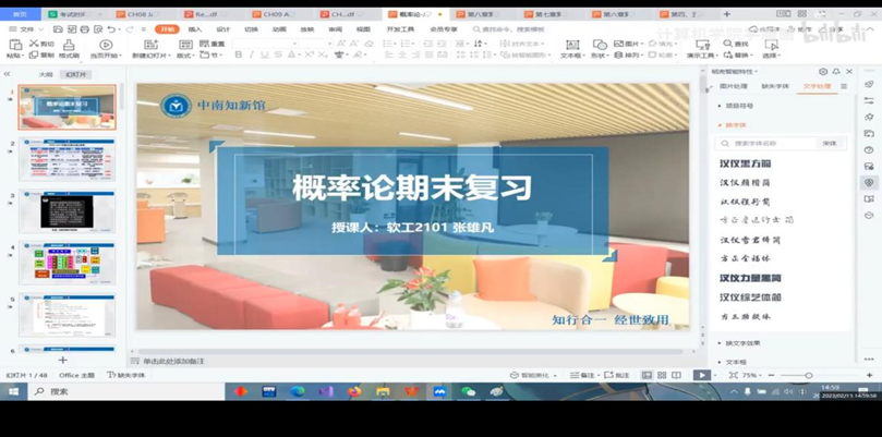 2月15日下午3点,由软件2101班的辅学义工张雄凡主持的概率论辅导正式开始。他首先介绍各个章节在期末考试中所占的分数,之后依照章节顺序,复习基础知识点,同时用近几年期末真题作为例题来讲解,讲练结合,令人印象深刻。更重要的是,在辅学义工的讲解下,同学们可以迅速了解考试的重点内容,提高复习效率。