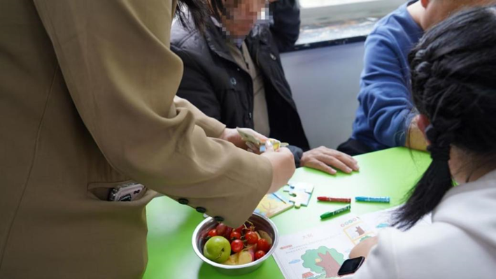 活动开始,服务中心的工作人员将学员分成六个小组,每两个志愿者组成搭档,将带来的水果分发给小组学员。在此过程中,志愿者们与学员们相互介绍,逐渐熟悉,通过水果架构起沟通的桥梁,初见时的陌生感一扫而光。
