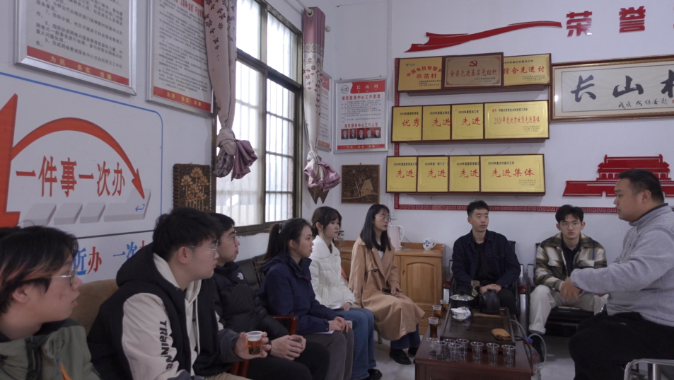 调研团队来到长山村,球王会官网驻长山村乡村振兴工作队王志伟老师以江华苦茶热情招待了调研团成员,他谈到球王会官网多年来对江华县帮扶的进展与成果,提到乡村振兴尤其是要产业先振兴,致力于提高村民收入,防止脱贫后返贫。为此,球王会官网驻村工作队一方面打造了以江华苦茶、江华红薯粉为重点的特色产业,扶持当地乡镇企业;另一方面建立了多个蔬菜种植基地,出品高质量原生态蔬菜,并引进农副产品加工厂,解决蔬菜储存周期过短的问题,提高农副产品附加值。交流过后,王老师带领调研团走进茶园,感受乡村风貌。
